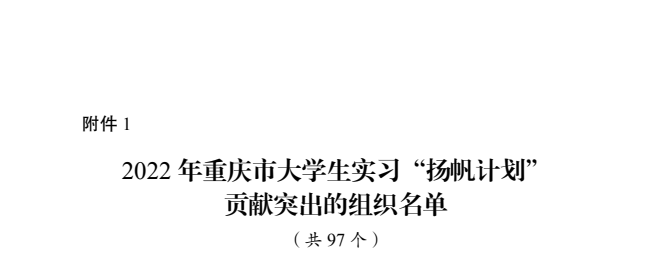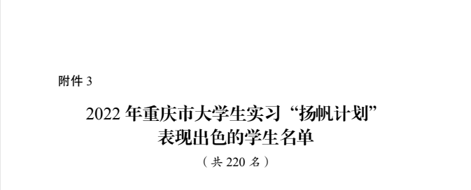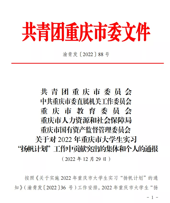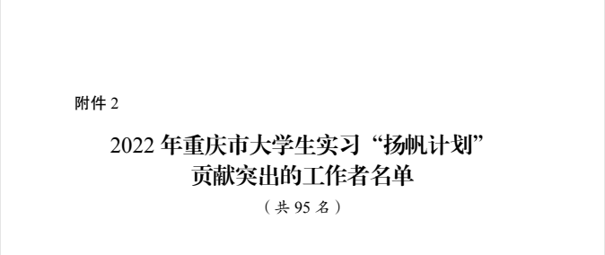 荣获2022 年重庆市大学生实习“扬帆计划”