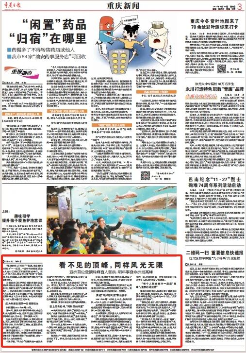 11月26日,《重庆日报》刊发了《看不见的顶峰,同样风光无限 亚洲首位登顶珠峰盲人张洪:明年攀登非洲最高峰》,讲述了纪录片《看不见的顶峰》主角——涪陵人张洪登顶珠峰的故事。