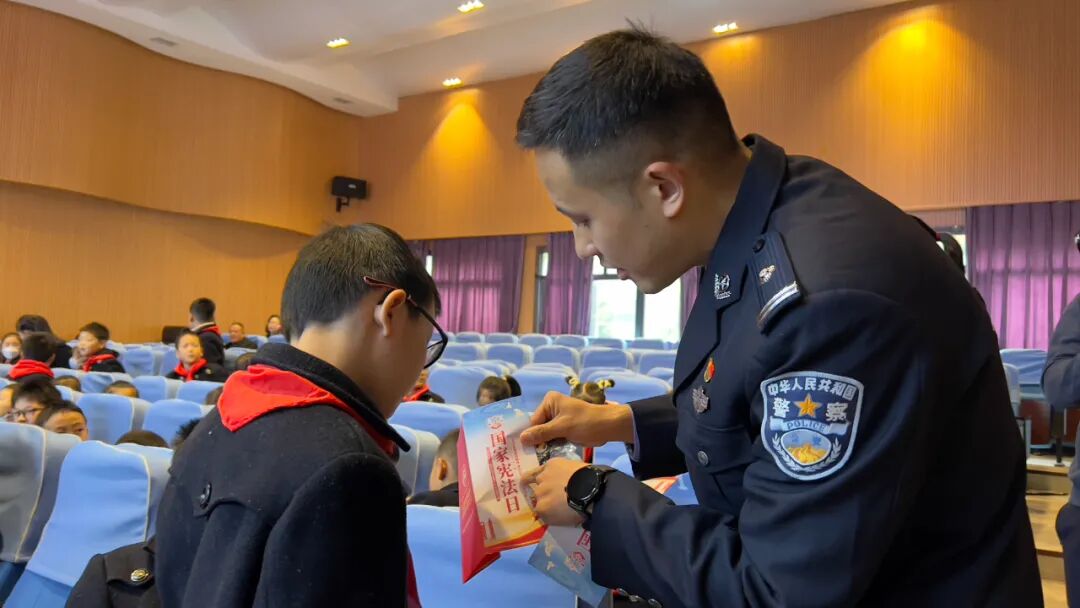 今天是第十个国家宪法日。今年国家宪法日的主题是“大力弘扬宪法精神 建设社会主义法治文化”。公安民警走进课堂,通过主题班会活动,让法律法规知识在孩子们的心里扎根。