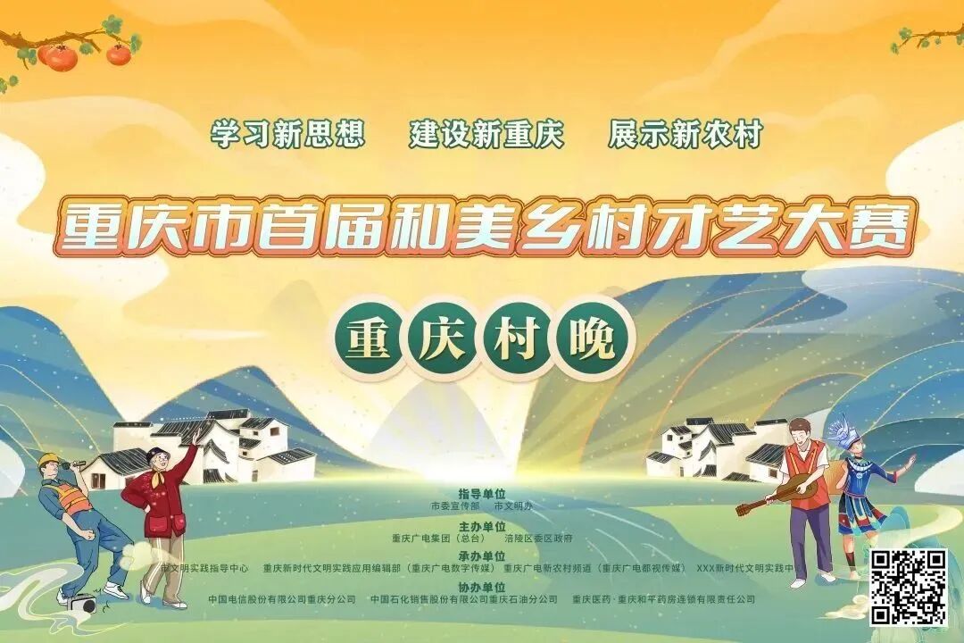 为深学笃用习近平文化思想,深入贯彻落实全国宣传思想文化工作会议工作部署,全面推进乡村文化振兴和乡风文明建设,由市委宣传部、市文明办指导,重庆广电集团(总台),涪陵区委、区政府主办的重庆市首届和美乡村才艺大赛(重庆村晚)总决赛,将于2024 年 1 月下旬在涪陵区蔺市街道美心景区举行,欢迎大家踊跃报名参加。