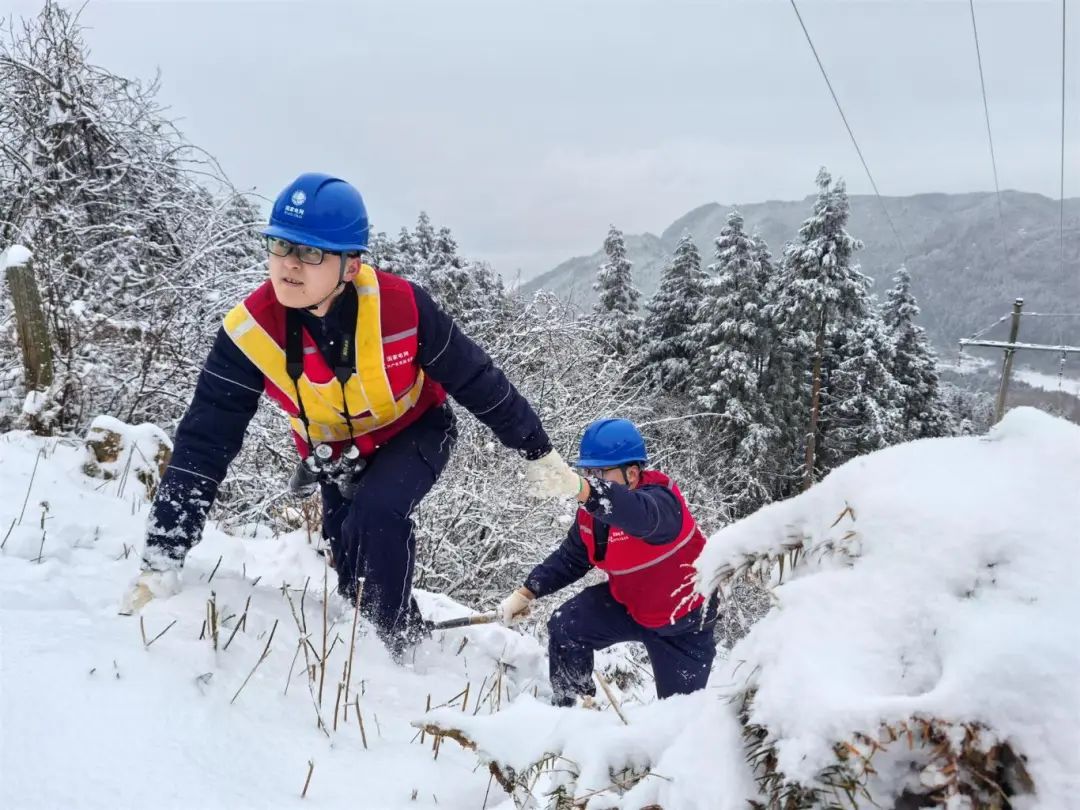 受寒潮影响,近日,涪陵区高海拔地区迎来2025年第一场大雪。为了输电线路安稳运行、保障市民用电,1月9日,川东电力公司焦石供电所组织党员服务队深入武陵山区对涛中线、焦武线开展巡线检查,并及时清理导线积雪。